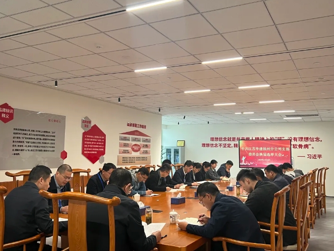 11月15日,江蘇華建揚州分公司黨支部召開換屆選舉大會,機關全體黨員參加會議,江蘇華建黨委...