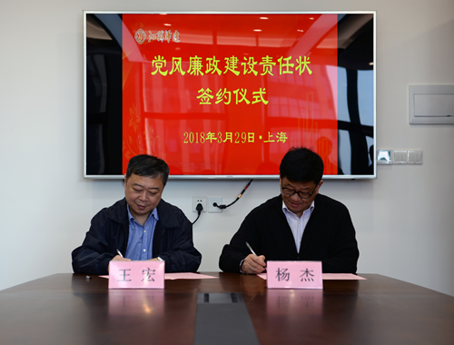 會上,江蘇華建董事長、黨委書記王宏和上海分公司黨總支書記楊杰簽訂了《2018年黨風廉政建設責任書》,江蘇華建紀委書記錢啟明作了黨風廉政教育。