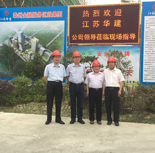 15日,宗總等領(lǐng)導(dǎo)一行親臨工地,視察由蘇北分公司承建的泰州金融服務(wù)區(qū)項(xiàng)目。