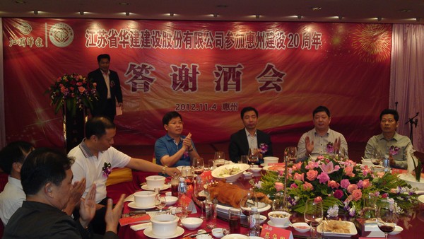公司在惠隆重召開參加惠州建設20周年慶典暨答謝酒會 時間:2012-11-06 4439 公司在惠隆重召開 參加惠州建設20周年慶典暨答謝酒會 11月4日,公司在惠州凱賓斯基酒店王子飯店隆重召開參加惠州建設20周年慶典暨答謝酒會,公司副董事長、總經理宗有農主持酒會并作開場致辭。惠州市有關政府部門、部分合作方企業的負責人,華建聯盟成員單位負責人,公司董事、監事和高管等130余人出席慶典。惠州公司總經理華恒榮介紹了公司參加惠州建設20年的有關情況。惠州市工商聯主席、公司戰略合作伙伴恒宇實業集團公司董事長楊滿芳代表合作方發言,惠州市住房和城鄉規劃建設局副局長陳訓政代表政府主管部門致辭,分別對江蘇華建進駐惠州施工、參加惠州建設20周年表示祝賀。公司董事長陸金龍代表公司總部對惠州市有關政府部門、相關合作方和社會各界人士給予公司的關心和支持表示誠摯的感謝,并表達了進一步加大支持力度、加強戰略合作、加快科學發展的意愿。 (峰年 文/圖)