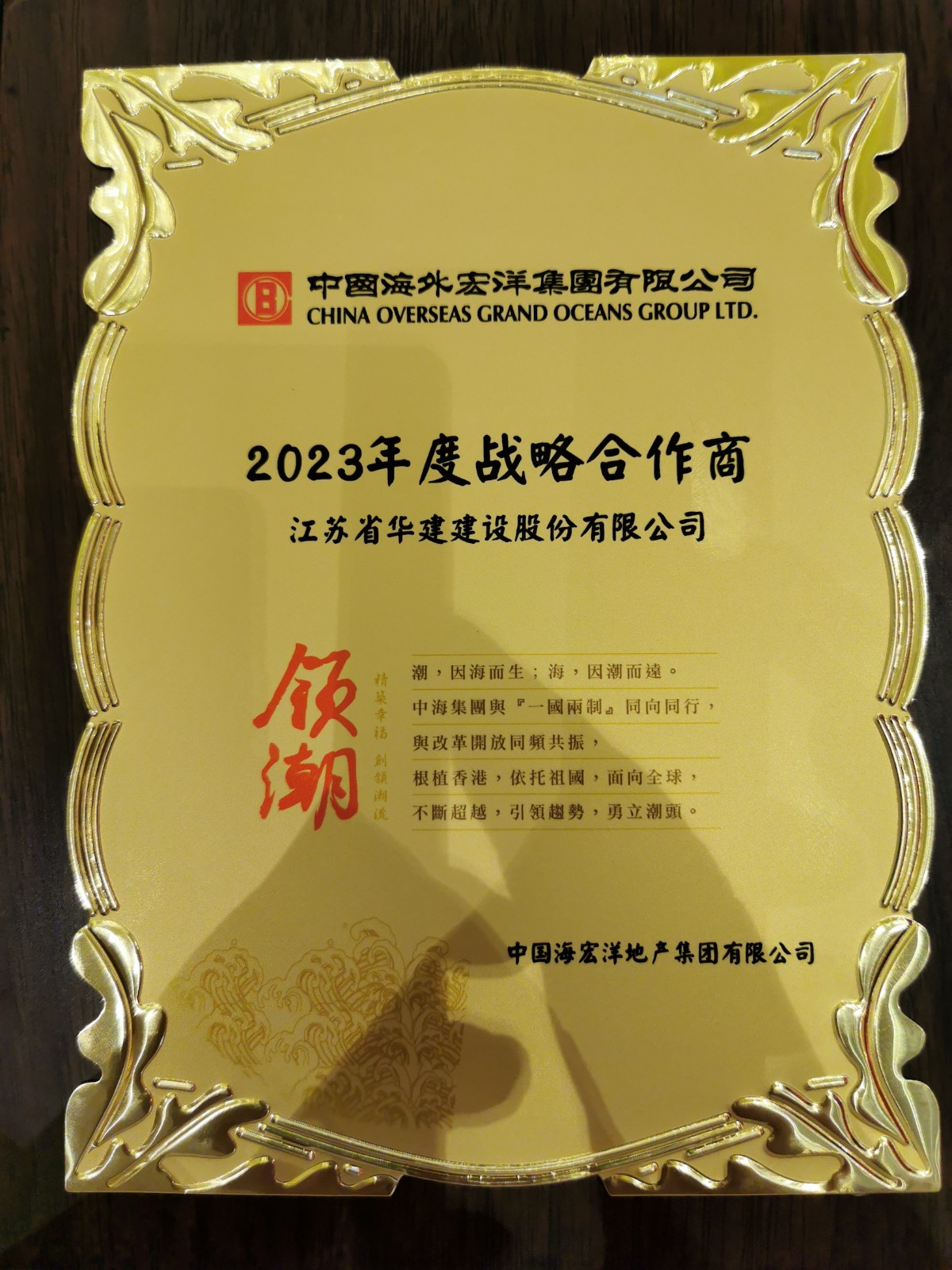 2023512日,中海宏洋集團在深圳中信城市廣場舉行2023年度戰略單位簽約儀式,江蘇華建作為唯一新增總包單位入選戰略合作商名單。江蘇華建總經理吳碧橋、中海宏洋副總經理張海軍代表雙方簽約。