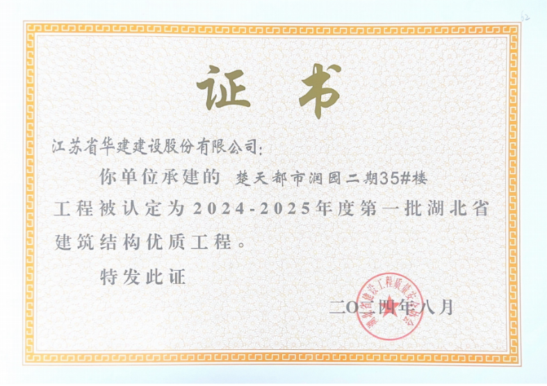 近日,公司承建的楚天都市潤園二期項目被湖北省建設工程質量安全協會評為“2023-2024年度第三批湖北省建筑工程安全文明施工現場”和“2024-2025年度第一批湖北省建筑結構優質工程”。