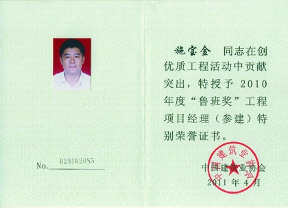 施寶金 時間:2012-04-10 7729 施寶金,高級工程師,現任深圳公司七處二工區常務副主任、項目經理。1996年到深圳參加工作,參與過國際商會中心、榮超經貿中心、江勝大廈、綠景紀元大廈等重點項目施工,獲“深圳市建筑業企業優秀項目經理”稱號,被授予“創魯班獎工程項目經理特別榮譽證書”。