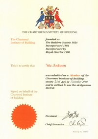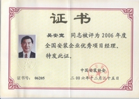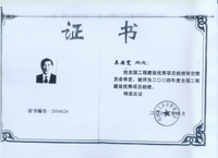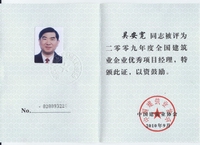 2002年開始他被聘為北京市建設工程評標專家;2003年獲“中國安裝企業優秀項目管理工作者”稱號,2004年獲全國工程建設“優秀項目經理”稱號;2006年獲全國安裝企業優秀項目經理; 2007年獲揚州市國資委黨委頒發的“三強”黨支部書記稱號;2008年12月獲得中共北京市外地在京施工企業委員會頒發的在奧運工程建設中的優秀共產黨員;2009年獲“江蘇省建筑業企業杰出建造師”和中國建筑業協會頒發的“全國建筑業企業優秀項目經理”榮譽稱號。2009年他還參加了英國皇家特許建造師(CIOB)國際執業資格認證培訓。目前,他已順利通過考試,獲得英國皇家“英國特許建造師”資格。