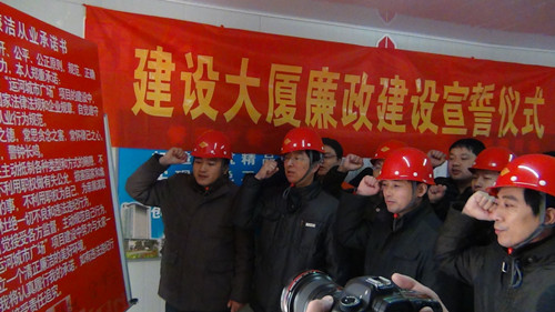 近年來,隨著公司轉型升級發展加快,房地產開發、污水處理、BT等靈活投資方式日益增多,公司黨委非常重視投資項目廉政建設,為從源頭上預防和堅決遏制公司投資項目建設過程中違法違紀行為的發生,決定由紀委、監察室總負責,對投資項目實施監察,實行工作前移、過程監督,并出臺相關實施辦法。監察工作具體由公司紀檢監察室負責,除加強廉潔從業教育和相關法律法規教育外,重點督促和檢查各項工作制度的建立和落實,與相關方簽訂《廉政責任書》、《廉政合同》,對重點環節進行督查,確保廉政責任與經營責任同步實施,同時在辦公場所和項目現場設置醒目的廉政警示牌,公布舉報電話,及時處理人民來信來訪,查處違紀違規行為。12月中下旬,公司黨委副書記、監事會主席吳士茂和黨委委員、紀委書記錢啟明及黨委委員、副總經理程杰等領導先后赴鹽城華建置業、揚州華盛置業開展廉政教育,組織全體員工舉行莊重的廉潔從業宣誓儀式,并與相關方簽訂《廉政責任書》和《廉政合同》,希望公司工作人員嚴以律己、廉潔從業,并希望相關方理解和支持,共同打造優質工程、品牌工程、廉政工程。