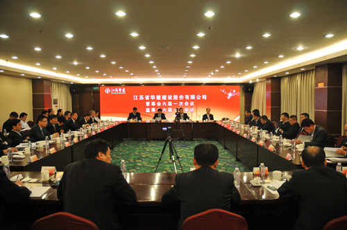 427日下午,江蘇省華建建設股份有限公司股東大會2013年會暨董事會、監事會五屆七次會議在揚州召開。會議由陸金龍董事長主持,10名股東代表、11名董事、4名監事出席會議,公司高級管理人員、各分支機構和總部各部室負責人、公司律師團代表列席會議。會議聽取和審議通過了副董事長、總經理宗有農同志所作的董事會和經營層工作報告,監事會主席吳士茂所作的監事會工作報告,公司總會計師李長棟同志所作的《關于2012年度財務決算和2013年度財務預算方案的報告》和《關于2012年度股利分配方案的報告》。