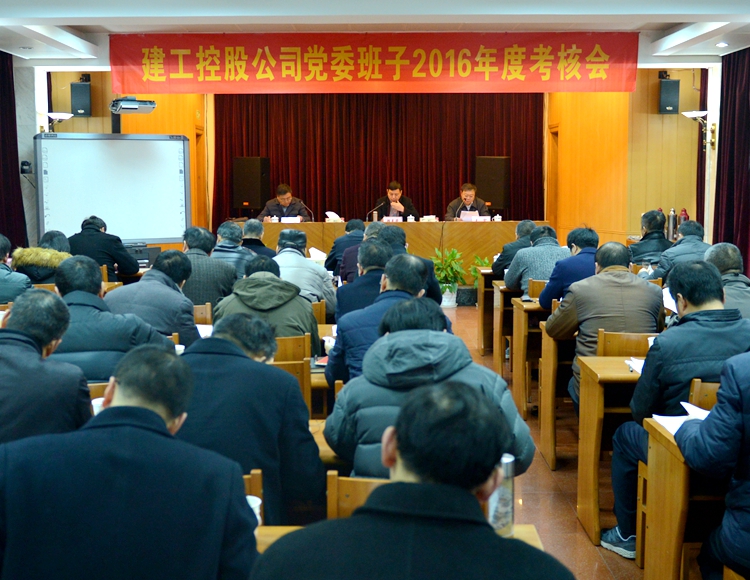 另訊,2月6日上午,建工控股公司在一樓會議室召開了黨委領導班子2016年度考核會。市國資委副主任顧克榮帶領的考核組成員一行到會指導。會上,公司黨委書記、董事長王宏代表建工控股公司黨委領導班子和個人作述職述廉述學述法報告,宗有農總經理也在會上作了個人述職述廉述學述法報告,黨委其他委員分別作書面述職述廉述學述法報告。市國資委顧克榮副主任作了點評講話。會上,黨委書記王宏分別與揚建集團、建筑中專校黨組織負責人簽訂了黨風廉政建設責任狀。參會人員對建工控股公司黨委領導班子和班子成員分別進行了民主測評,對公司選人用人工作和新選拔任用干部進行了民主評議。會后,黨委書記王宏和紀委書記錢啟明又向國資委考核組專題匯報了黨風廉政建設情況。