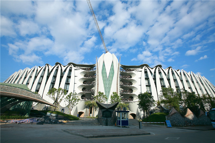 瑪絲菲爾總部中心位于深圳龍華大浪時尚小鎮,占地面積49800m2,建筑面積11萬㎡,總投資10億元。工程建筑外形采用當前最為時尚、最具風格的現代仿生學設計理念,所有建筑元素設計靈感都源于自然。建筑群俯視猶如展翅雄鷹,構件造型都按拋物線、螺旋線等幾何規律設計。該建筑為國內目前面積最大的仿生藝術建筑、深圳龍華時尚小鎮的代表性建筑,在國內建筑界引起了包括中國工程院院士在內的建筑專家的關注,未來有望成為國內時裝秀的主會場。工程于20097月開工,目前一期工程裝修完成50%,二期工程主體結構基本完成,進入裝修階段。一期工程12號廠房設有27對計54個葉片,每對葉片造型都不一致。中間設蓮花狀交通塔,屋頂設有波浪狀屋蓋。二期工程34號廠房分別設有6個雙曲葉面板、5片網格梁和22Y型鋼柱。
