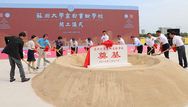 蘇州大學、高郵市、揚州市委宣傳部及公司相關領導為蘇州大學高郵實驗學校項目培土、奠基。