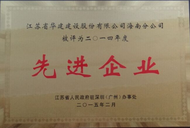 海南分公司榮獲“2014年度江蘇進(jìn)粵、桂、閩、瓊施工先進(jìn)企業(yè)”