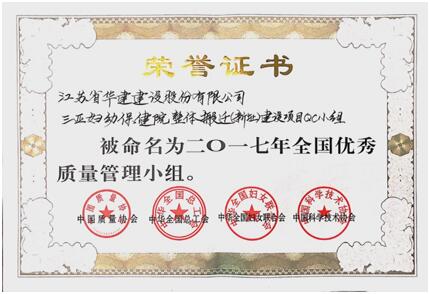 三亞婦幼保健院整體搬遷(新址)建設項目QC小組榮獲二零一七年全國優秀質量管理小組稱號