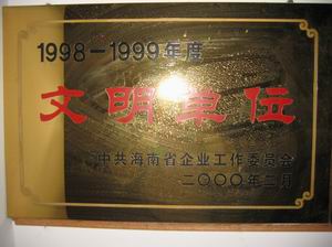 1995-2000海南省思想政治工作優秀企業     2004-2006省直機關先進基層黨組織