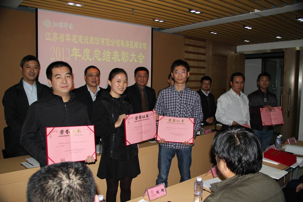 2014112下午,江蘇華建珠海區域公司召開2013年度總結表彰大會。為響應中央精簡會議活動、切實改進會風要求,本次會議地點選定在珠海區域公司會議室,會場布置簡樸,會議議程緊密圍繞工作展開。江蘇華建副總經理、珠海區域公司總經理繆國樞作2013年度工作報告,全面總結珠海區域公司2013年度工作,并對2014年工作進行部署。嚴正濤副總經理宣讀了珠海區域公司2014年度生產經營工作計劃,馮喜平總會計師宣讀加強財務管理工作的通知,周學軍副總經理、總工程師宣讀對2013年度先進集體和先進個人的表彰決定。會上,繆國樞總經理代表區域公司與各工程處、直管項目部負責人簽訂內部承包管理協議,明確各自的職責,“分得清楚”,才能“合得愉快”。