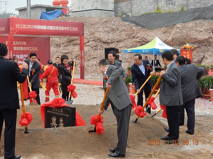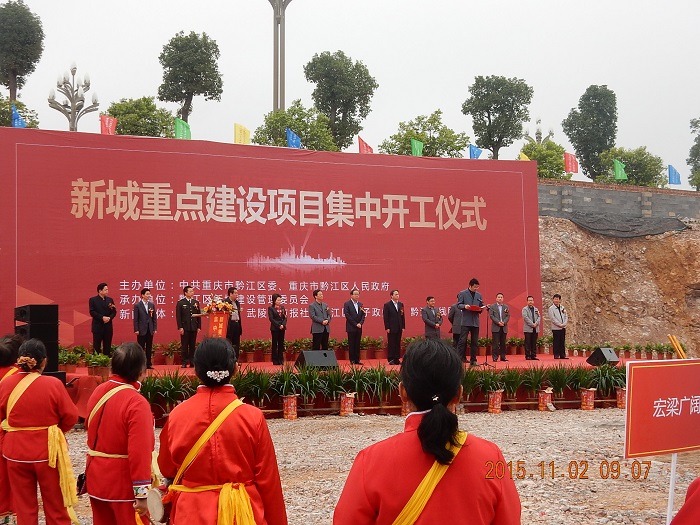黔江區(qū)新城重點(diǎn)項(xiàng)目集中開工儀式在我司學(xué)府花苑項(xiàng)目現(xiàn)場舉行
