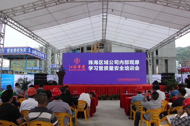 10月16日下午,珠海公司在晉和天慶花園二期項目部舉行內部觀摩學習暨質量安全培訓會。珠海區域公司、重慶分公司各工程處、直管項目部項目經理、技術、安全負責人80余人參加了培訓會。