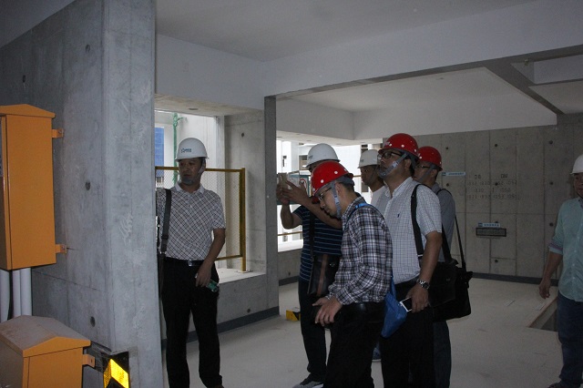 次日,公司組織重慶分公司參會人員對廣東建星建筑工程有限公司施工的珠海華發國際海岸花園A1地塊一標段工程進行觀摩交流學習。華發國際海岸花園工程系廣東省質量月推薦觀摩工地,該工程采用了鋁模技術、預制樓梯整體吊裝技術、液壓爬升布料機技術、附著式全鋼自爬升架技術、ACC蒸壓加氣混凝土墻板安裝技術、泡沫混凝土填充墻現澆墻體技術、XPS復合保溫板施工技術等多種新技術,并且在現場制作了大量實物樣板。觀摩學習該工程使大家深受震撼,并紛紛表示獲益良多。