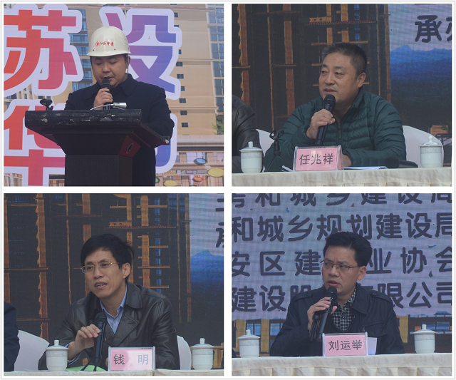 官盛春天項目經理曹亞明代表公司介紹了官盛春天項目建筑安全文明施工標準化工作開展情況和主體結構施工質量控制情況;廣安區委常委、政法委書記萬良政通報了今年以來廣安區質量安全工作開展情況;廣安市住建局黨組成員、總工程師劉運舉號召各參會單位以我司官盛春天項目為榜樣,比學趕超、奮勇拼搏,努力實現質量安全新突破和新發展,為不斷推動全市建筑質量安全水平做出貢獻;四川省質安監督總站副站長任兆祥結合全省實際從狠抓安全生產工作、工程質量治理長效監管機制建立及質量安全責任落實三方面進行強調,并提出了下步工作開展計劃和要求。