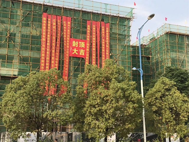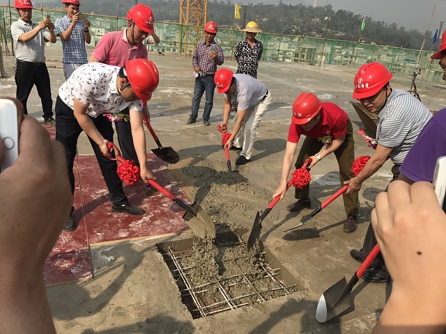 公司首個在滇項目——華輝城市廣場順利封頂 時間:2017-05-07 3050 5月6日,公司首個在滇項目——云南石屏縣華輝城市廣場舉行主體結構封頂儀式。重慶分公司總經理嚴正濤出席儀式。 華輝城市廣場項目位于石屏縣新城核心中央地段,為該縣城的“CBD”。整個建筑面積為18萬平方米,地上面積為13.4萬㎡,地下4.5萬平方米。其中一期工程建筑面積為93843.78平方米,承包范圍土建、水電、消防、門窗、室外園林綠化等工程(即除電梯工程外),一期主要以商業開發為主,項目結構為框架,以3層結構為主,預計2017年6月竣工。
