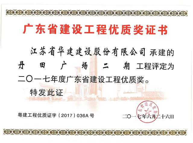 近日,廣東省建筑業協會發文公布2017年度廣東省建設工程優質名單,我司承建的珠海航空標準件保稅倉儲基地丹田廣場二期和君怡花園小區中心商場3個項目榜上有名。