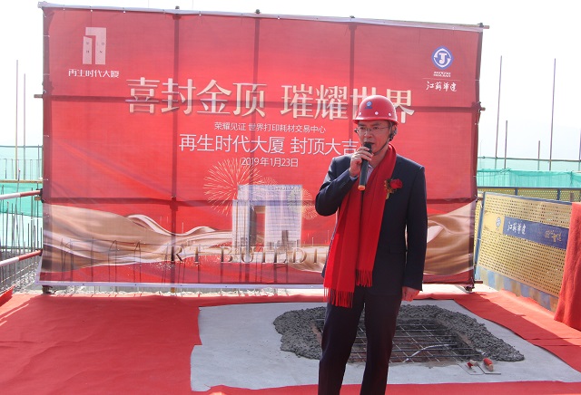 2019年1月23日,由珠海再生時代投資置業(yè)有限公司投資開發(fā),我司施工總承包的珠海再生時代大廈項目舉行隆重的封頂儀式。珠海再生時代文化傳播有限公司董事長李廣連,珠海再生時代投資置業(yè)有限公司總經理張文中,江蘇華建珠海區(qū)域公司總經理呂方達等參加封頂儀式。