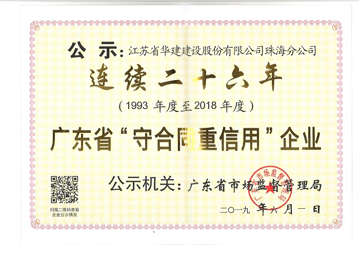 公司連續二十六年被廣東省市場監督管理局表彰為“守合同重信用企業”