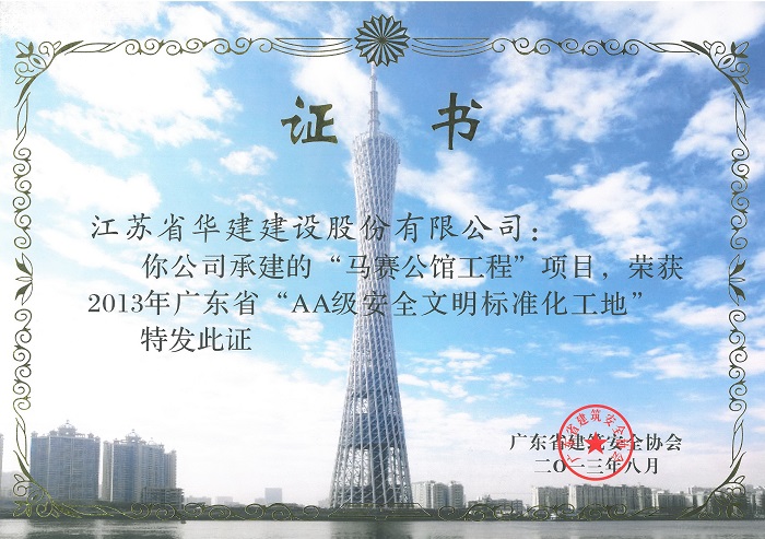 2013年馬賽公館工程廣東省“AA級安全文明標(biāo)準(zhǔn)化工地”