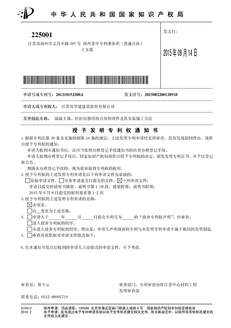 日前,江蘇華建上海區(qū)域公司發(fā)布的《混凝土墻、柱拉結(jié)筋用組合體預埋件及其安裝施工方法》發(fā)明創(chuàng)...