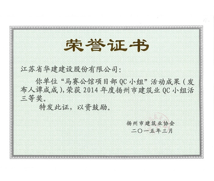 近日,揚州市建筑業(yè)協(xié)會發(fā)文表彰了2015年度全市建筑業(yè)QC小組活動成果獎,公司共有5項成果...