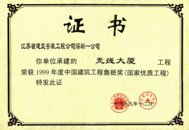 無線大廈(現(xiàn)名國(guó)通大廈)位于福田區(qū)新洲,建筑面積73069M2,高度201.5M,地下室2層,地上43層,是一座高智能化的電信寫字樓,結(jié)構(gòu)設(shè)計(jì)為鋼筋砼框架一筒體結(jié)構(gòu),8-32層為無粘結(jié)預(yù)應(yīng)力樓板砼,工程總造價(jià)6億元。工程于1995年6月開工,1997年12月竣工,施工中主要應(yīng)用了無粘結(jié)預(yù)應(yīng)力砼、高強(qiáng)泵送砼、粗直徑鋼筋連接、外墻干掛花崗巖等新技術(shù)。榮獲深圳市、廣東省、江蘇省的優(yōu)質(zhì)樣板工程,“江蘇省新技術(shù)應(yīng)用示范工程”、江蘇省“揚(yáng)子杯”獎(jiǎng)和99年度國(guó)家“魯班獎(jiǎng)”。